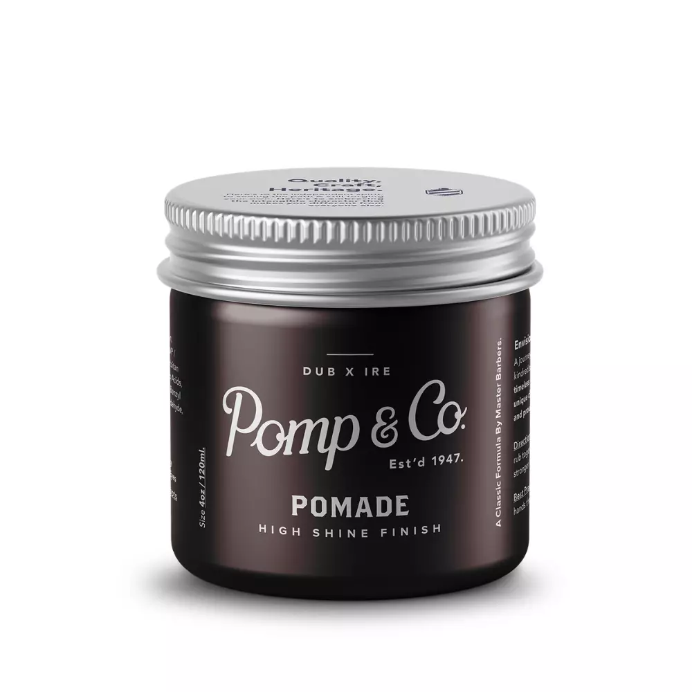 Pomada do włosów High Shine Finish Pomade - Pomp & Co. to wysoko skoncentrowana formuła stylizacyjna prosto od renomowanego, irlandzkiego producenta. Produkt gwarantuje eleganckie wykończenie na wysoki połysk oraz pożądany efekt mokrych włosów, idealnie sprawdzając się przy fryzurach typu pompadour, slick-back oraz innych klasycznych uczesaniach. Dzięki wodnej bazie pomada do włosów High Shine Finish Pomade - Pomp & Co. zapewnia chwyt od lekkiego do mocnego, a jednocześnie jest niezwykle praktyczna i łatwo się zmywa.